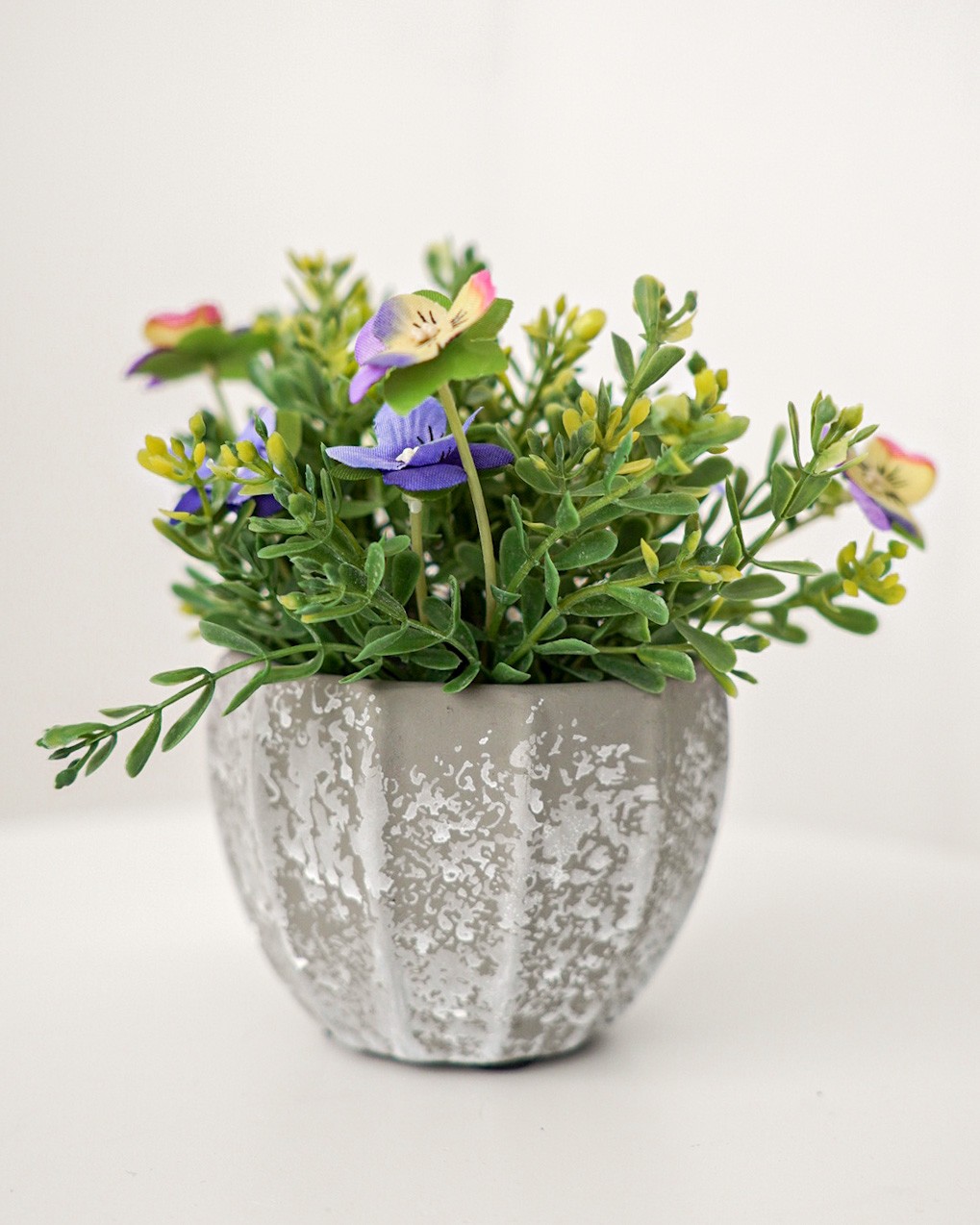 Vasetto Decorativo in Cemento con Fiori Piante Artificiali 3 colori