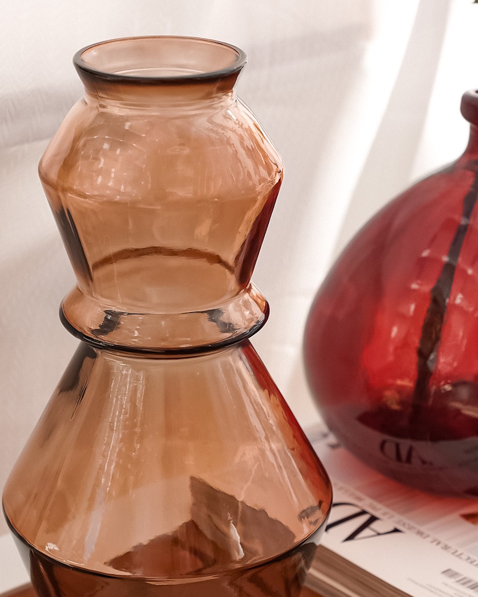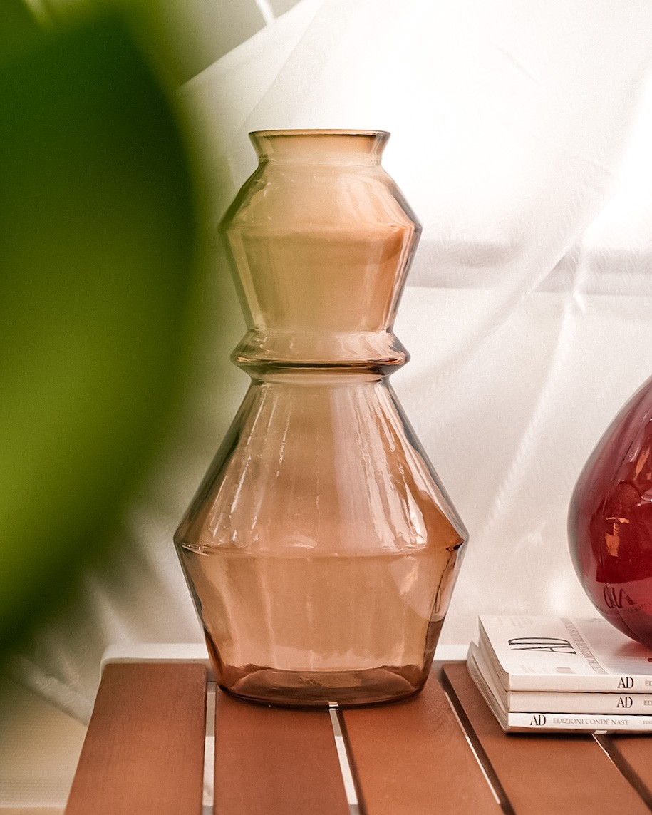 Vaso Merida sagmato, realizzato in vetro riciclato 100%, coore ambra. Altezza 30 cm.