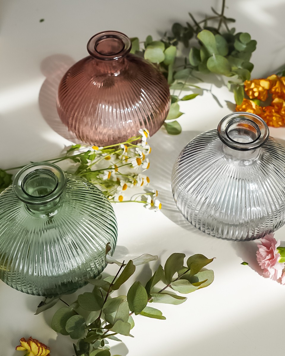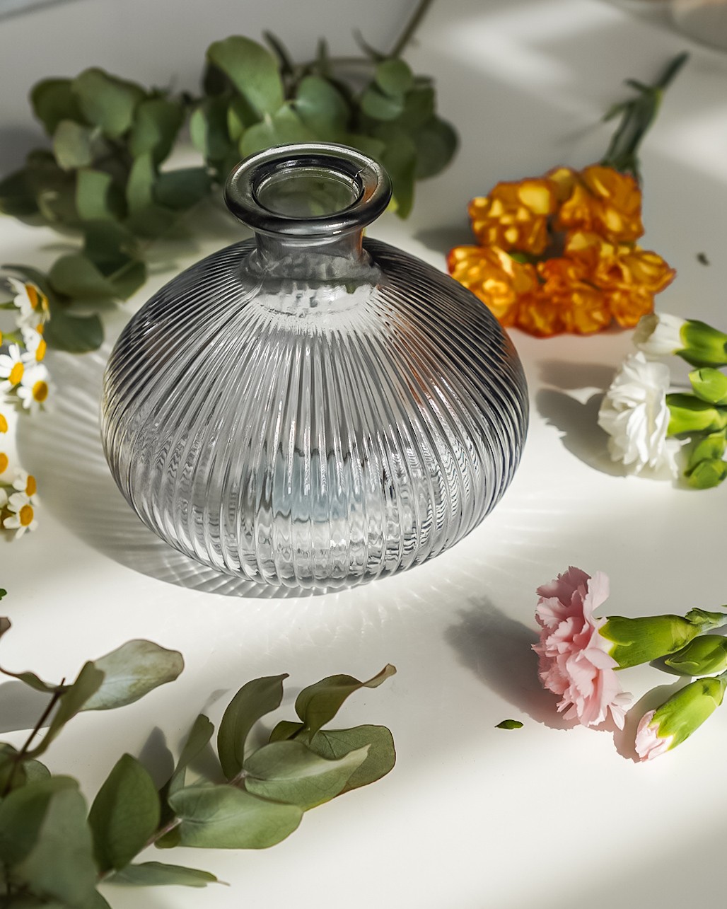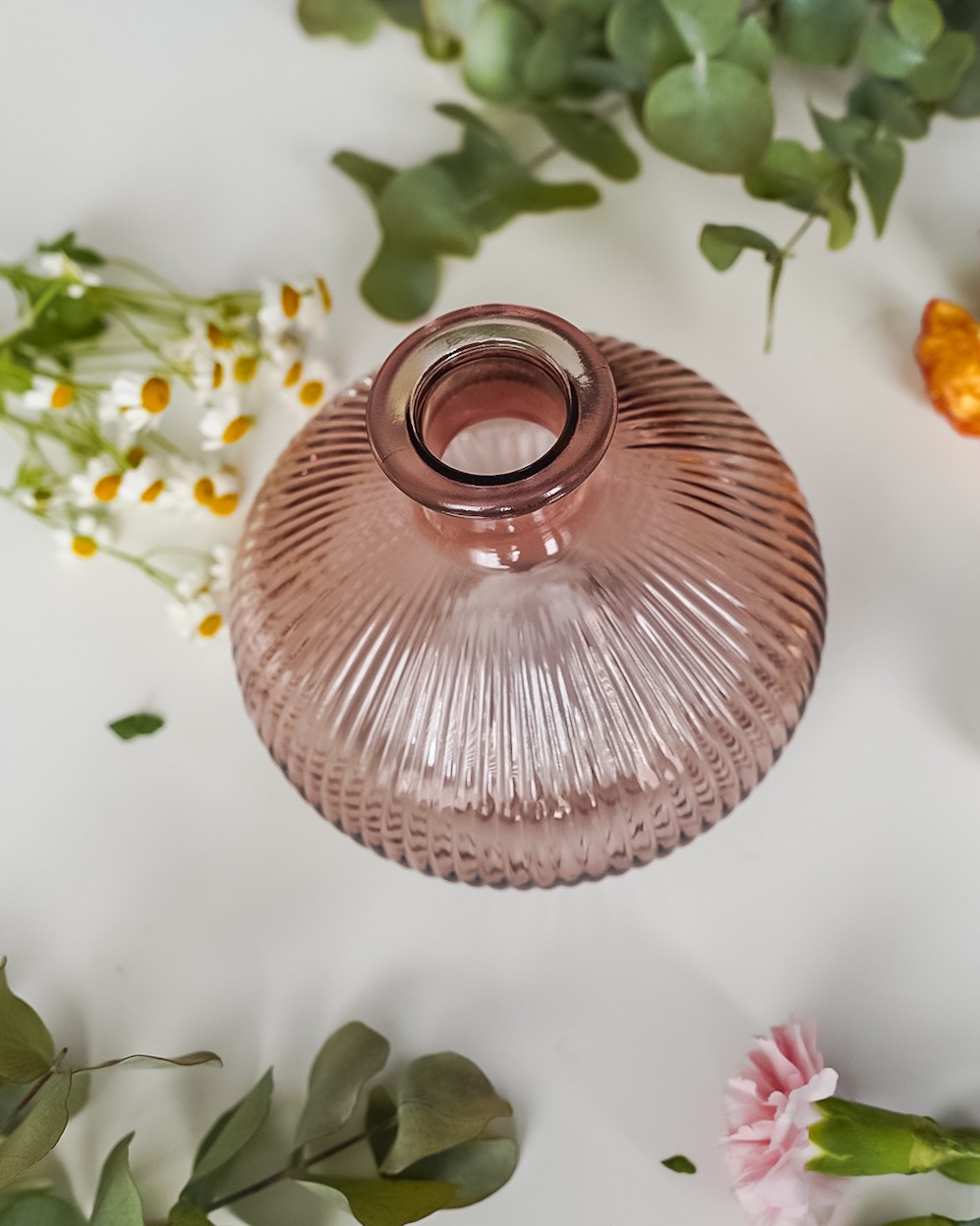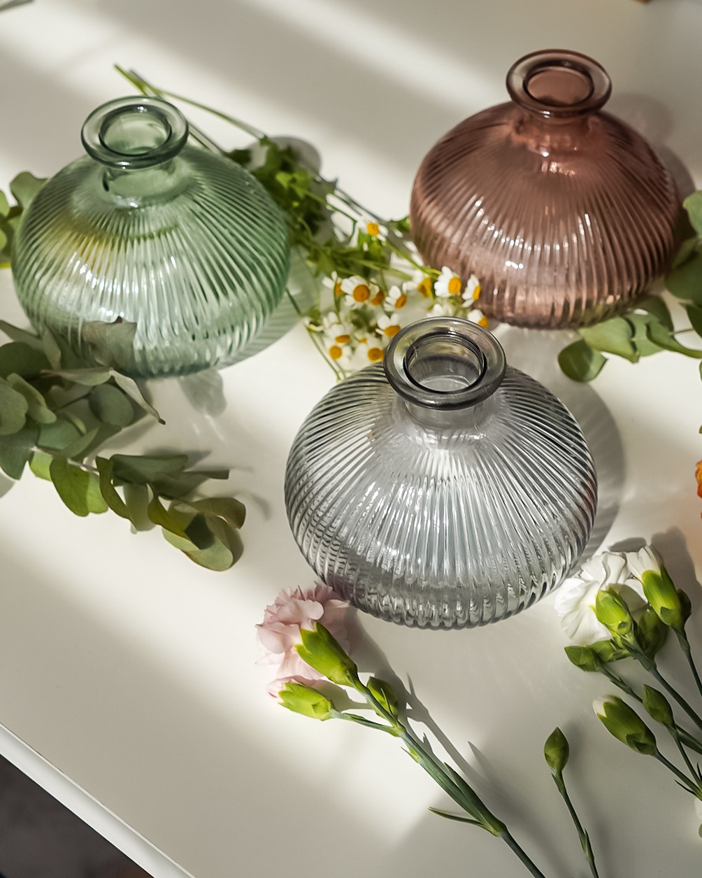 Vaso in vetro con scanalature, un vaso moderno ed elegante con colori abbinabili tra loro. Puoi scegliere tra rosa, grigio e verde
