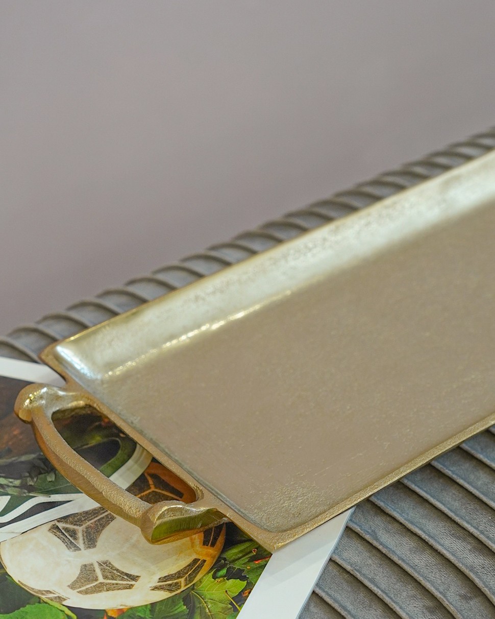 Vassoio Rettangolare in Metallo Dorato Ad Effetto Invecchiato In Due misure Con Manici