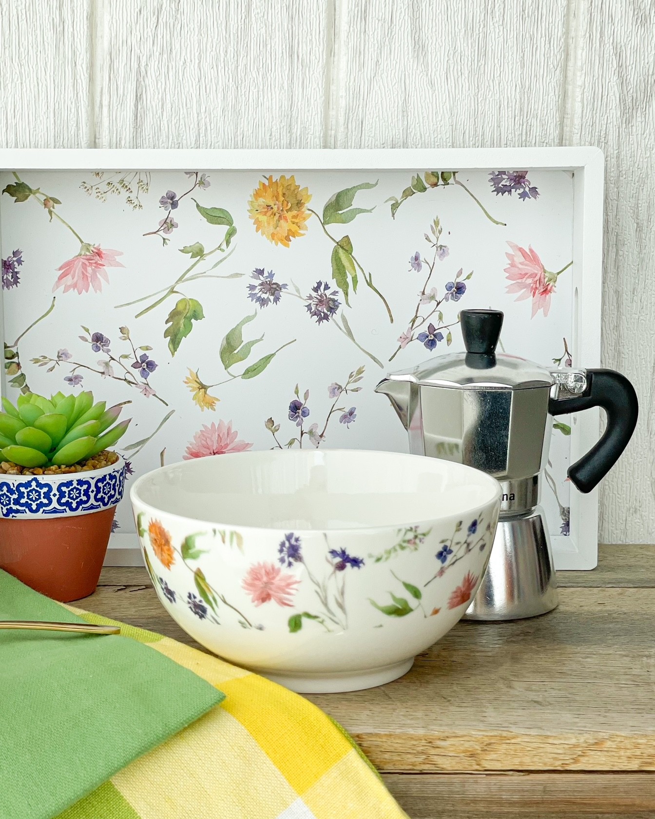 Il vassoio rettangolare Audrey del marchio Tognana è bianco, caratterizzato da delicati decori fioriti che richiamano la stagione primaverile, ed è ideale per servire in tavola bevande, aperitivi e stuzzichini. Immancabile per donare un tocco fresco e giovane alla tua mise en place, può essere abbinato agli altri accessori della stessa linea per un set completo e coordinato.