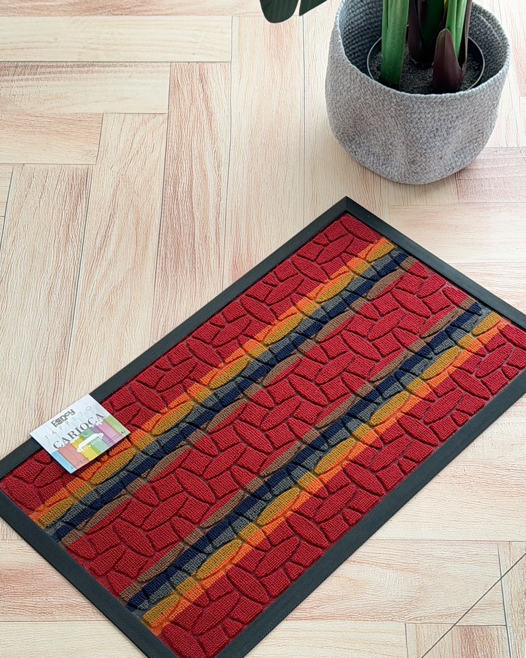 Lo zerbino Carioca è un tappeto con una trama 3D effetto moquette, molto particolare, con 8 diverse fantasie e colori brillanti. Il retro è in polipropilene antiscivolo.